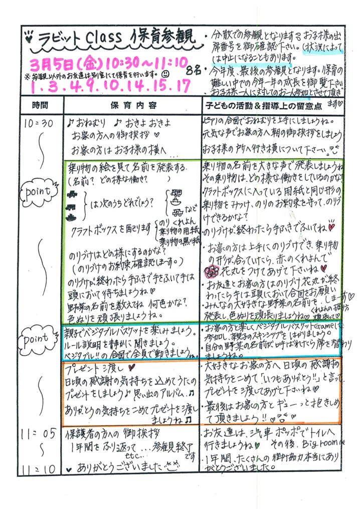 3月5日保育参観の日案