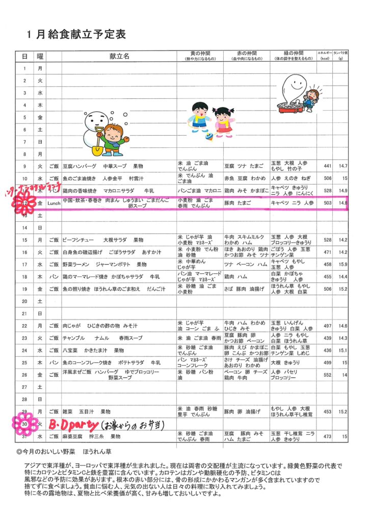 1月メニュー