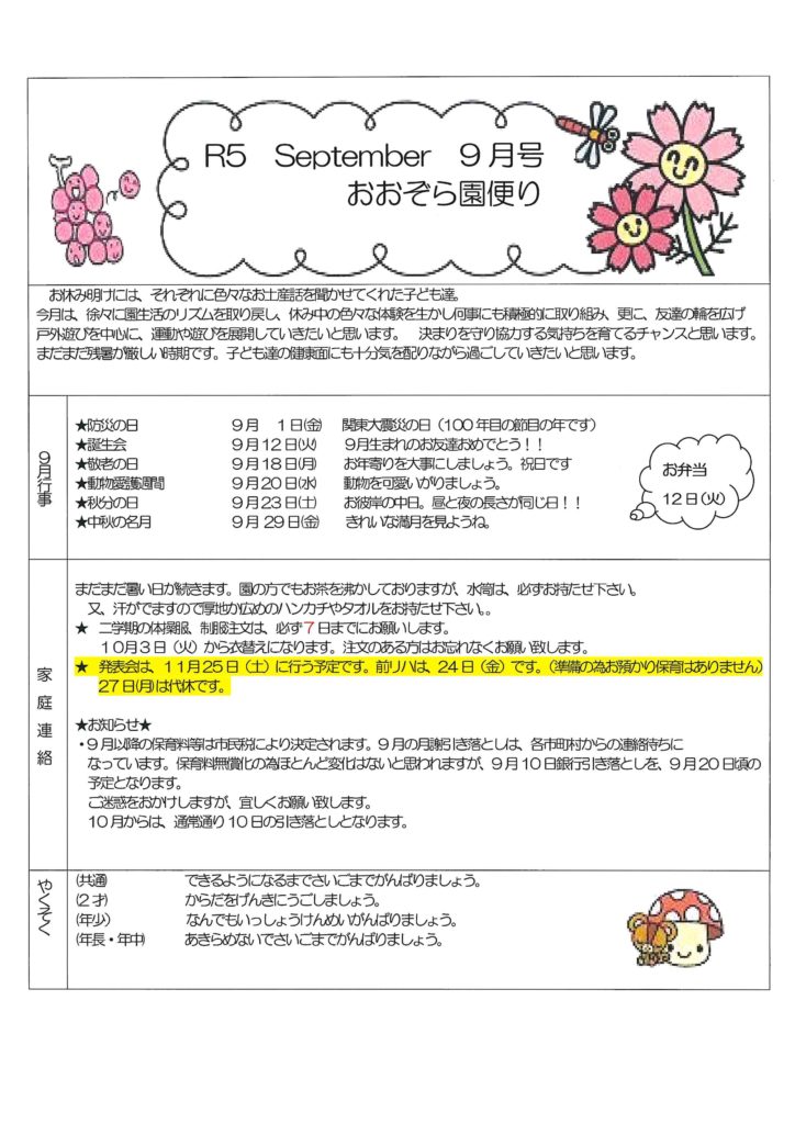 9月園だより