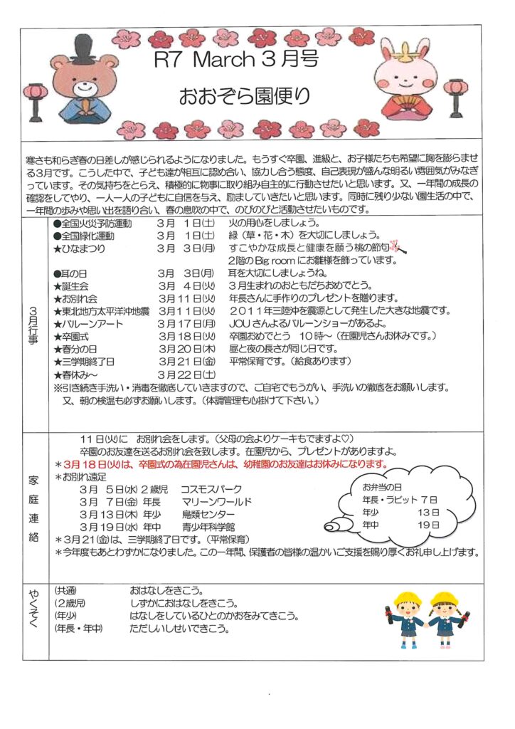 3月園だより