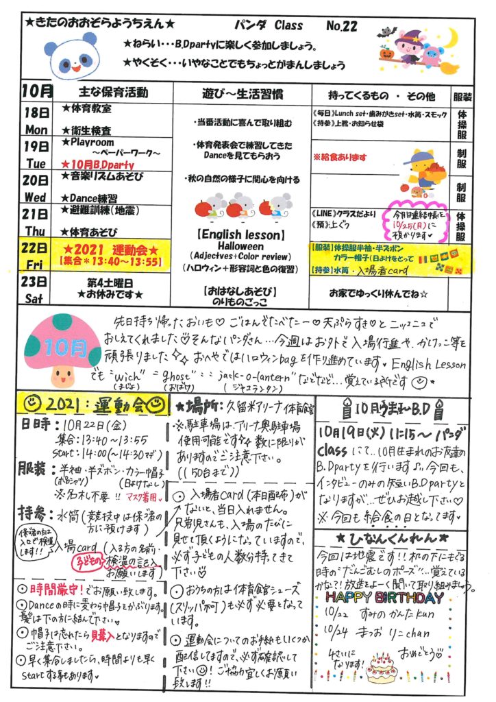 10月15日 NO.22&種目配置図