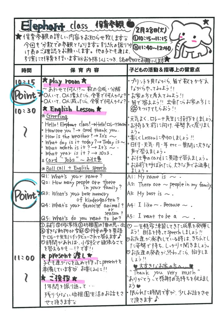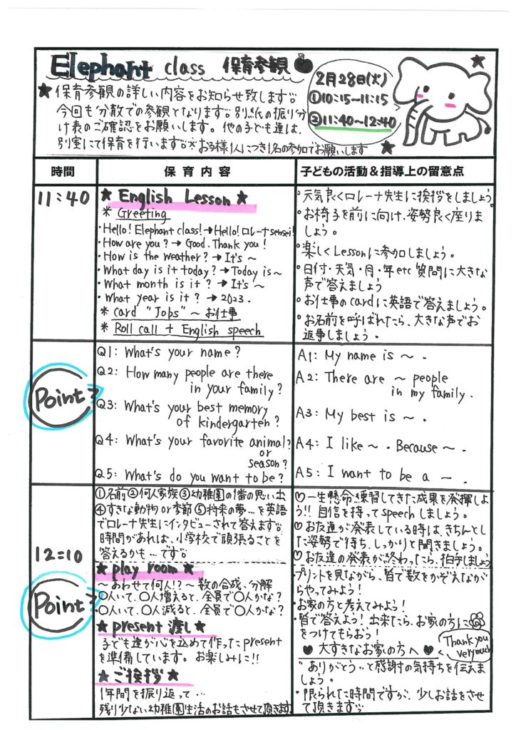 3学期保育参観の流れ