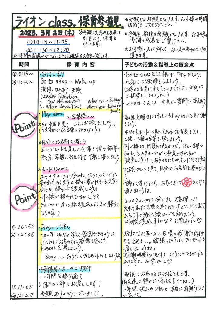 3学期保育参観の流れ