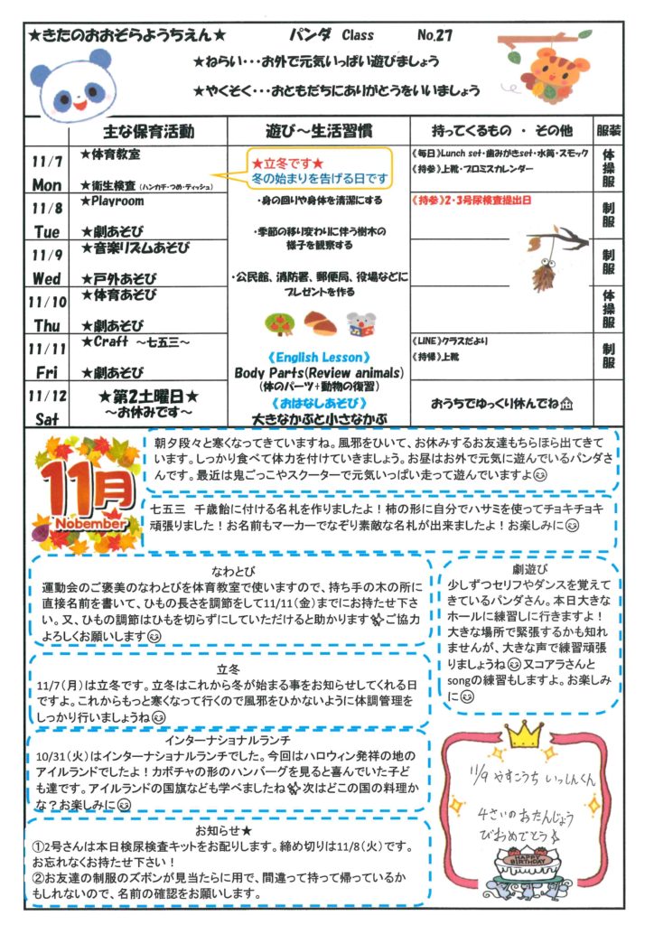 2022年11月4日 [2022年度パンダクラス]