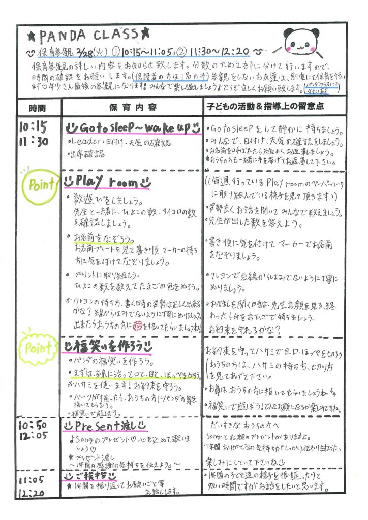 3学期保育参観の流れ
