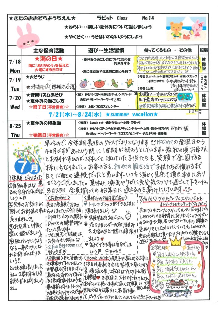 2022年7月15日 [2022年度ラビットクラス]