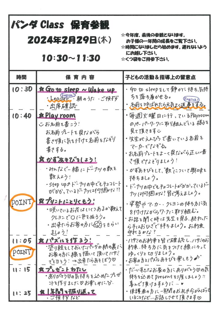 3学期保育参観の流れ