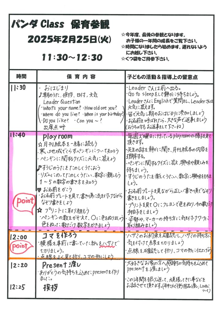 3学期保育参観の流れ