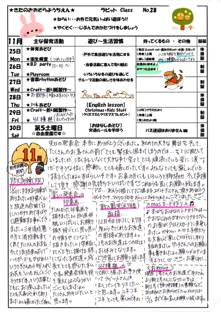 2024年11月22日 [2024年度ラビットクラス]